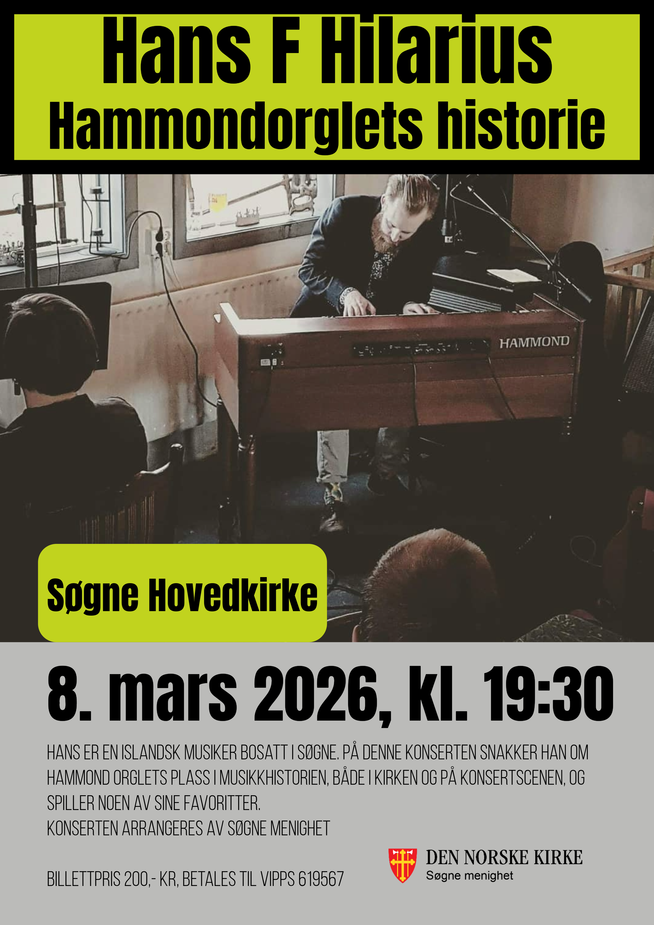 Søndag 8. mars kl. 19.30 blir det en litt annerledes konsert i Søgne hovedkirke med Hans F. Hilarius.