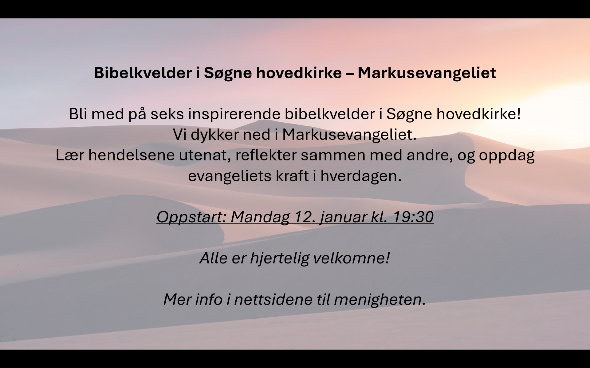 Våren 2026 arrangerer vi Bibelkvelder om Markusevangeliet i Søgne Hovedkirke!